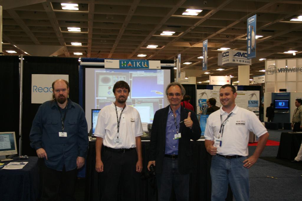 Haiku Booth - Day 1At 8:15AM, my sister gave me a ride over to the Moscone Center. We picked up Art Yerkes (from ReactOS) on our way, and proceeded down to the exhibit floor once we got there.