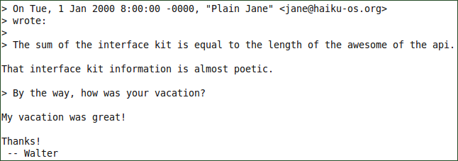- The first is a convenience feature of automatically condensing quoted text as simply "- Show quoted text -". This feature tends to teach users of Gmail that it is "OK" to quote the entire message, which is not the case for Haiku's mailing lists. To work around this, simply delete any unneeded text when replying.