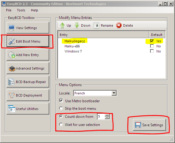 - hd0,2 – third partition of first drive (sda3) Haiku partition