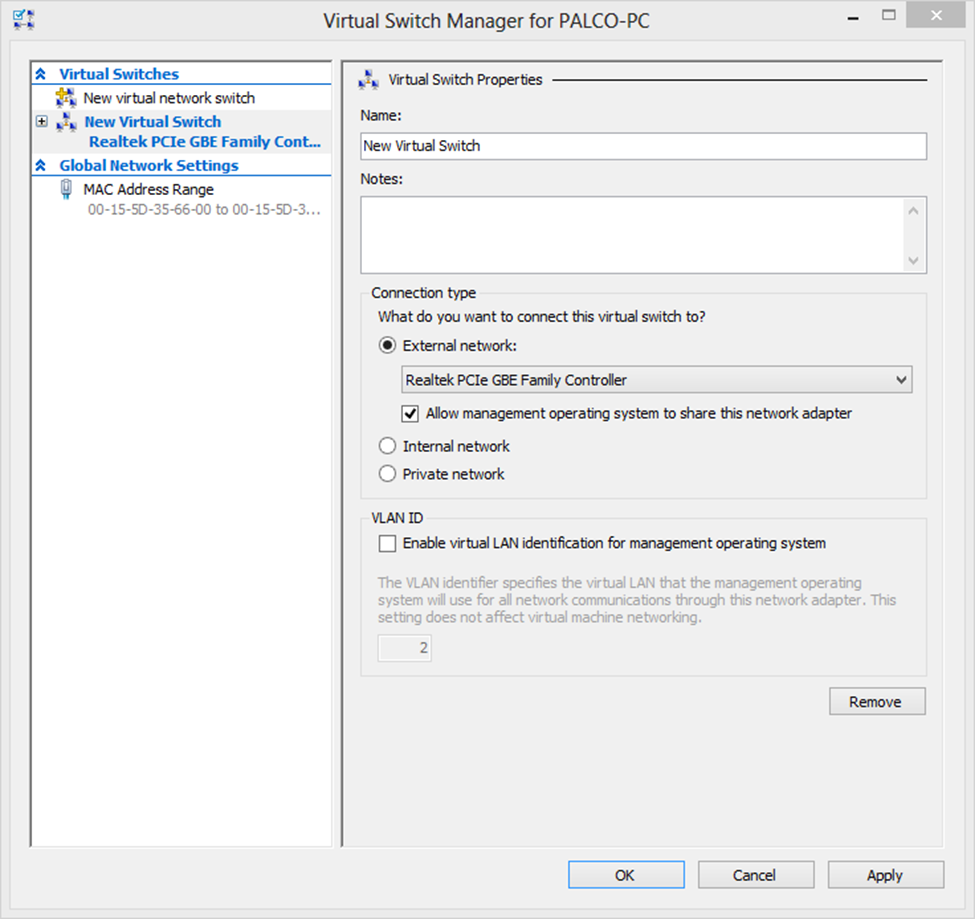 Open up Control Panel > Network and Internet > Network Connections. You will find that you now have “Ethernet” and “vEthernet (Your Switch Name)” connections.