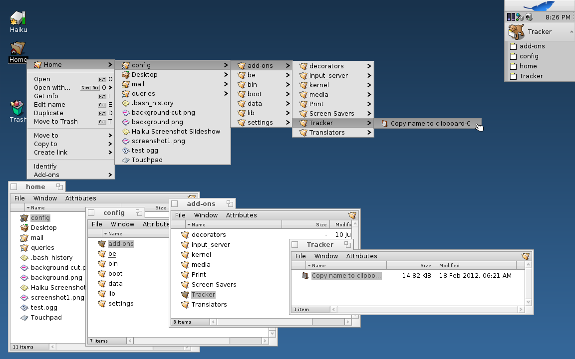 Drilling down the file system hierarchy via context menus can be a quick alternative to digging through window after window.